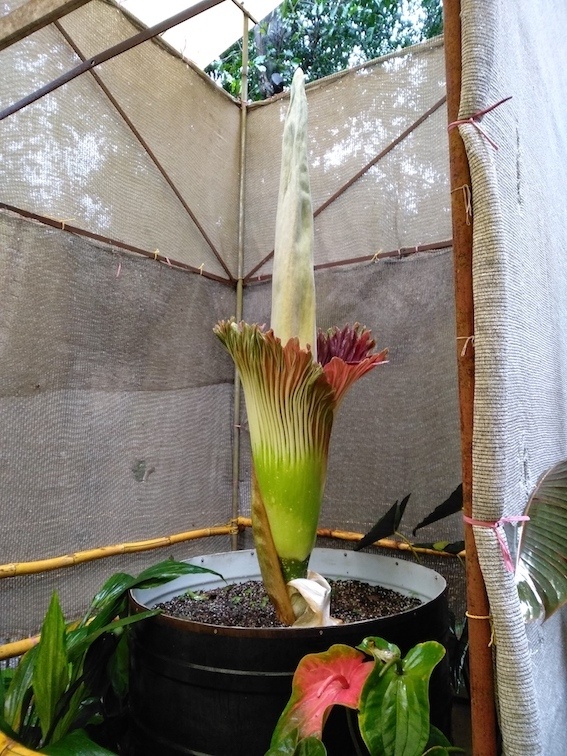 Famous for its distinct odour of rotting flesh, the flower's spectacular smell only began to fade by mid-morning the day after it started to open.